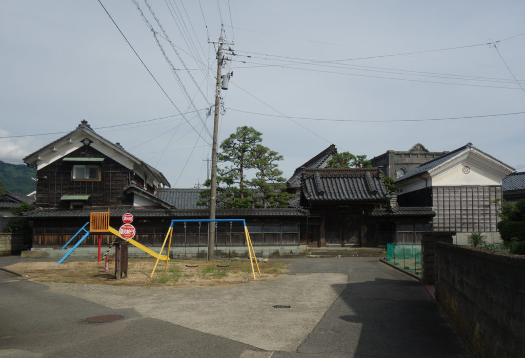 敷地正面に正門を構え、塀をめぐらし、入母屋造の主屋、昭和初期建築の洋館、土蔵3棟、昭和中期建築の新座敷が並び、旧家の屋敷構えを呈する。