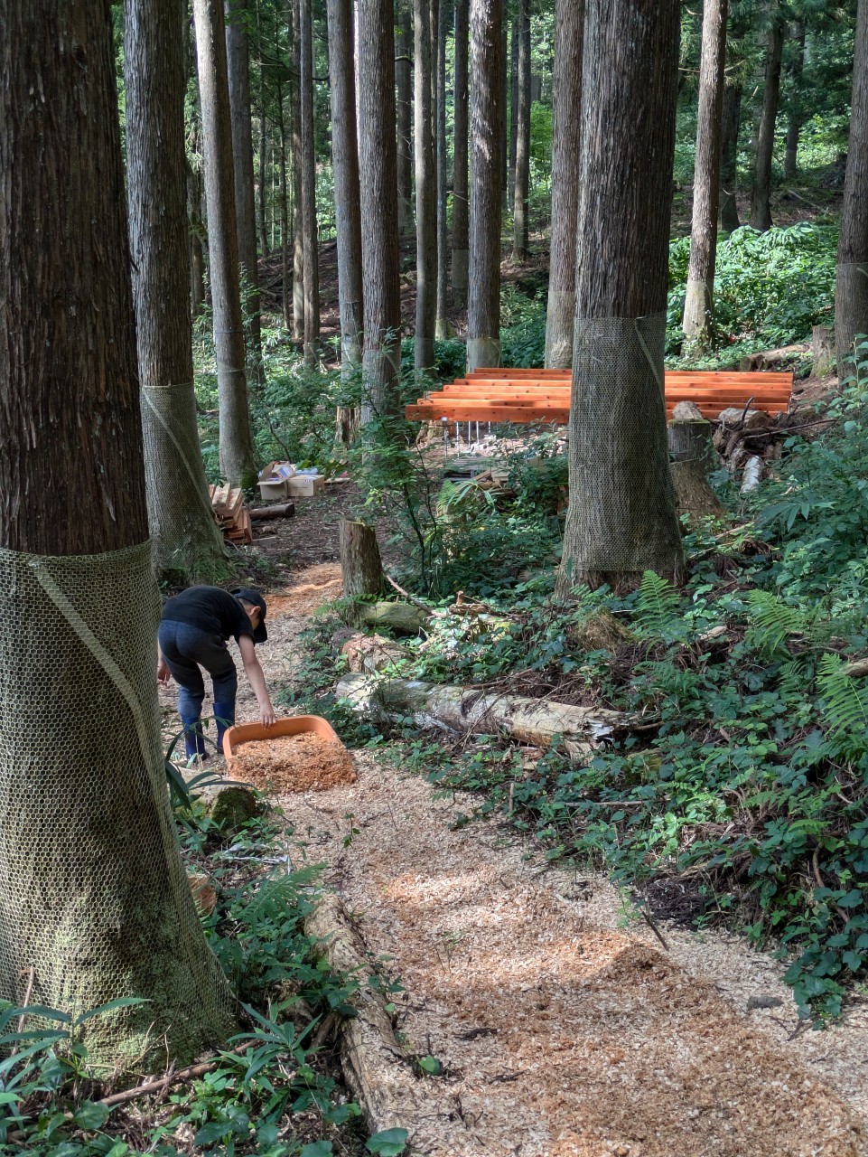 山の所有者さんの許可を得て、「仮設物」として計画。勾配が緩く、少し開けた場所に決まりました。